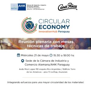 El miércoles 21 de mayo, CABE formó parte de la Reunión Plenaria del Circular Economy Innovation Hub Paraguay (CEI Hub), organizada por la Cámara de Comercio e Industria Paraguayo-Alemana.